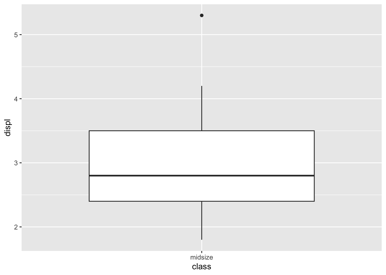 We can also filter on character data. For example, let’s take all vehicles in the ‘midsize’ class: