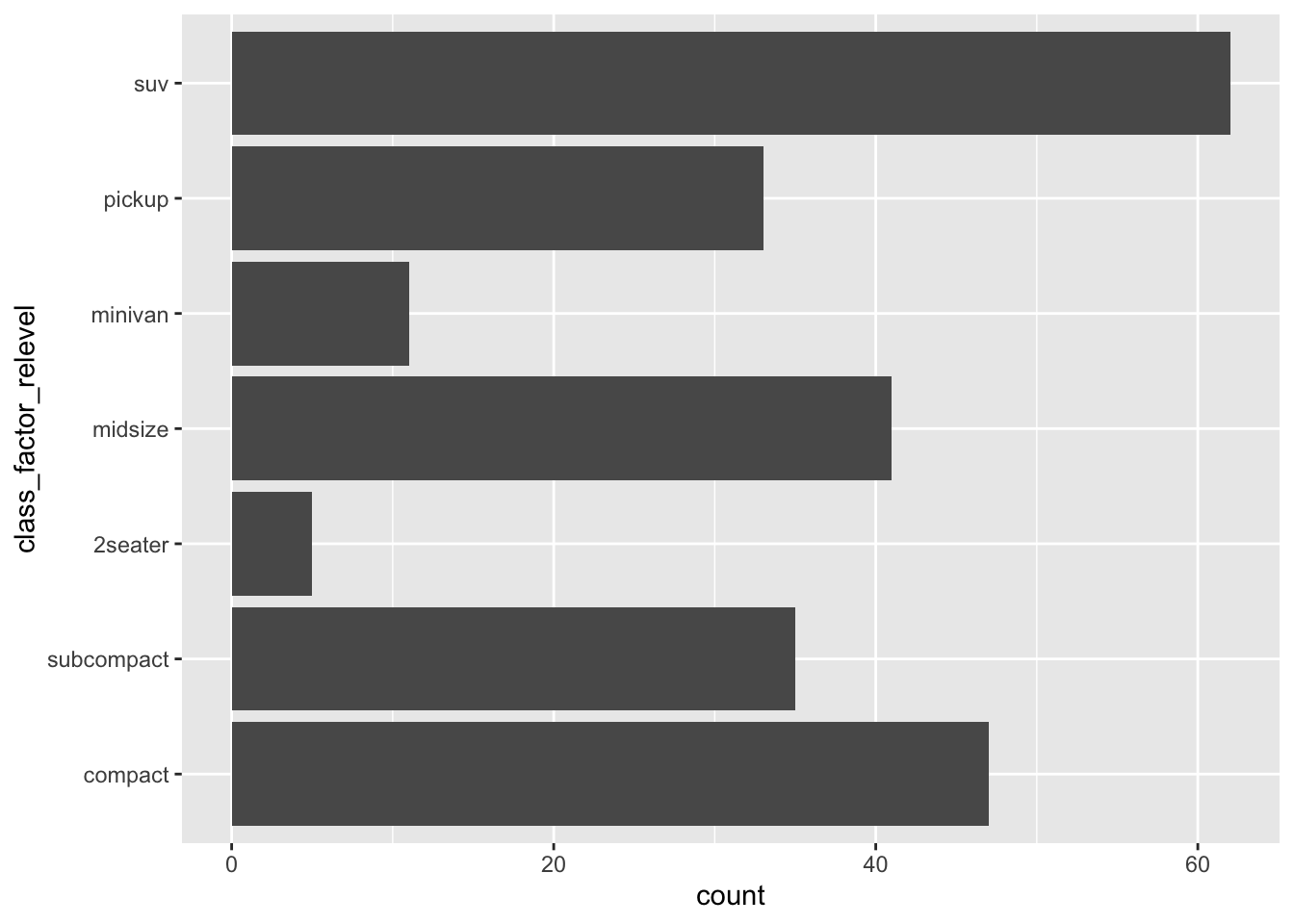 mutate(class_factor = fct_relevel(class_factor, 'compact', 'subcompact'))